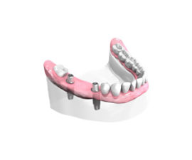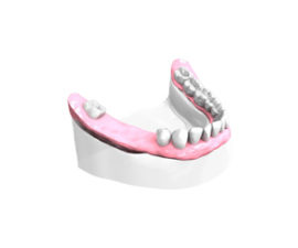 Après la pose des implants dentaires, et lorsque le cas est favorable et choisi, le Dr Florence Dhalluin et son équipe pourront mettre en place pour des raisons esthétiques un bridge provisoire.